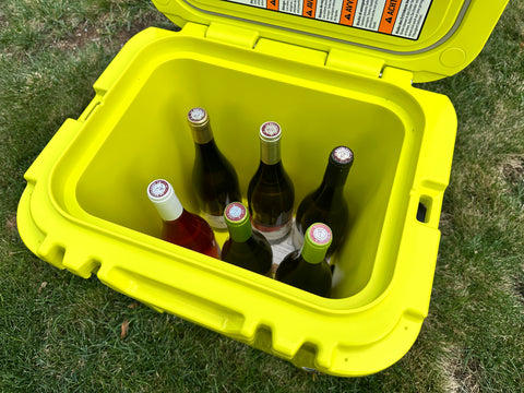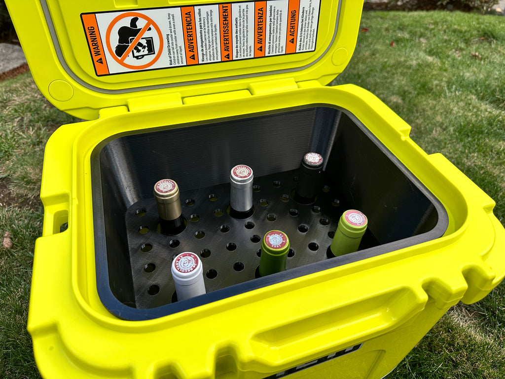 The tray was designed to allow up to 6 wine bottles to stand up right in the cooler. While still allowing you to keep dry goods in the tray. The wine bottles are held securely and are not able to move or tip over.